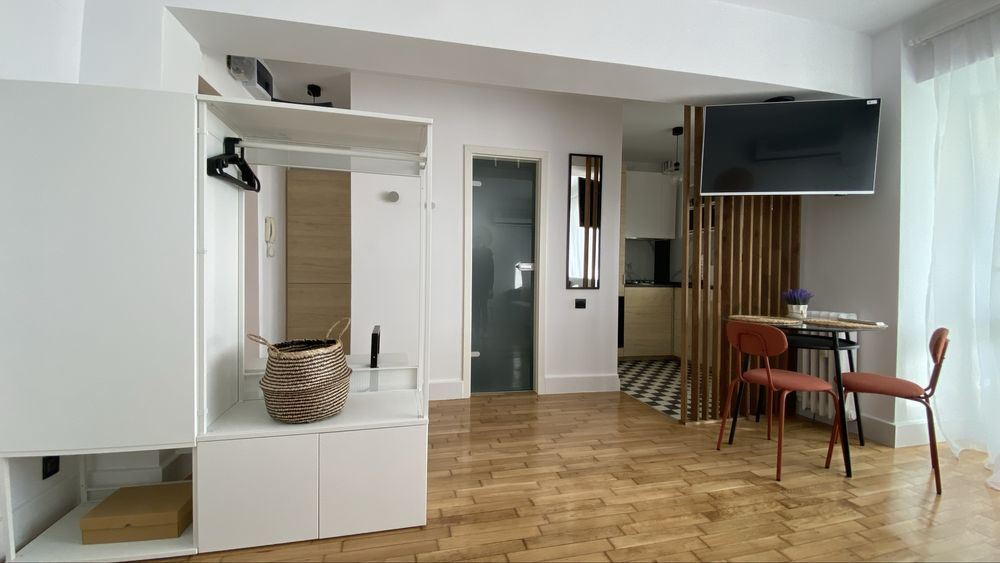 inchiriez garsoniera pe n titulescu aproape de piata victorieiproprietar dau spre inchiriere garsoniera draguta si cocheta aflata intro zona usor accesibila amplasata pe soseaua nicolae titulescu cu vedere panoramica pe spate lipsita de zgomotul masinilor imobilul este situat la etajul 711garsoniera dispune de tot confortul si spatiul necesar unei sederi deosebite aceasta este dotata cu masina de spalat rufe pat matrimonial o canapea extensibila plita pe gaz si cuptor electric incorporabile cuptor microunde combina frigorifica televizor smart aer conditionat amplasarea garsonierei este la 12 minute de metrou victoriei si 10 minute de metrou basarab- Caracteristici 2026-01-17