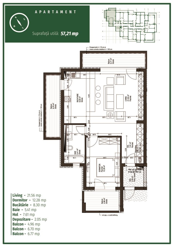 OCAZIE 2 camere 3 balcoane parcare subterana mobilat pe comanda