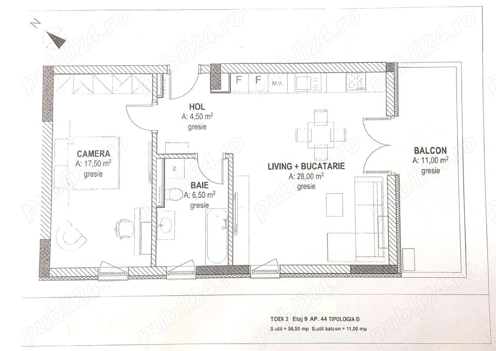 - Suprafata: 57m²