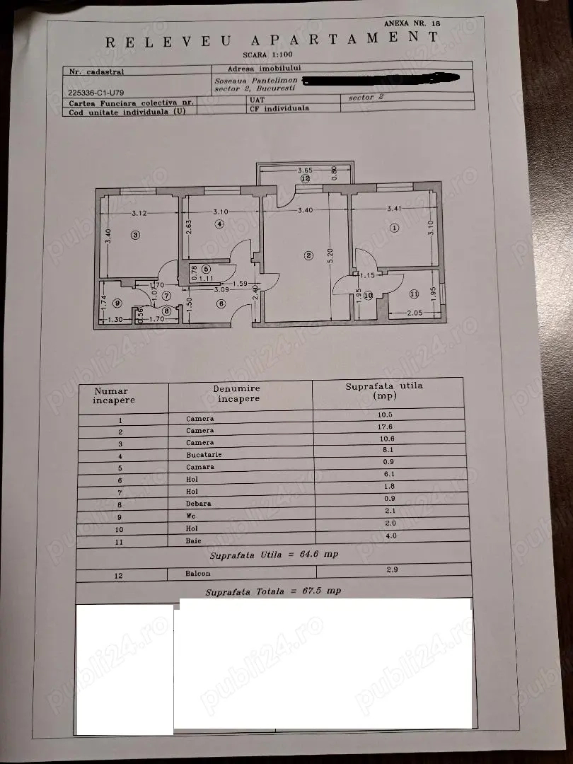 proprietar vand ap 3 camere sos pantelimon visa vis de biserica capravand apartament spatios de 3 camere semidecomandat cu suprafata de 65 mp an constructie 1978 situat la etajul 9 10 visvis de biserica capra locuinta este compartimentata cu un living generos 2 dormitoare luminoase bucatarie 2 debarale 2 bai si un balcon ideal pentru o familie mare acces rapid la transportul public farmacii magazine mega image lidl profi si mega mall in spatele blocului este situata scoala generala nr 46 visa vis de bloc se afla centreul medical hipocrat in apropiere stadionul national blocul este anvelopat apartamentul se vinde gol pentru detalii si vizionari sunati sau dati mesaj pe whatsapp la- Caracteristici 2026-02-16