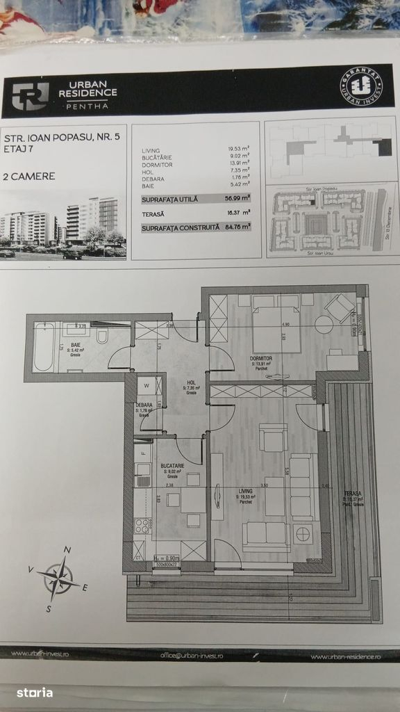 apartament 2 camere urban coresi premium terasa marepentru o prezentare video completa a apartamentului va invit sa accesati linkul tiktokhttpsbudeanuadrrevideo7303934906969656608proprietatea propusa spre vanzare este situata in zona coresi pe strada ioan popasu nr 5 peste drum de mall coresi in complexul rezidential urban una dintre cele mai apreciate si bine pozitionate zone din brasov locatia ofera acces rapid la magazine scoli gradinite restaurante spatii de joaca si mijloace de transport in comun locuinta cu structura decomandata este compusa dinhol de acceslivingdormitorbucatarie inchisabaiespatiu depozitare unde e si masina de spalatterasa mare ideala pentru relaxareapartamentul are o suprafata utila de 57 mp si o suprafata construita de 84 76 mp beneficiind de o terasa mare de 16 37 mp pe colt fiind pozitionat la etajul 7 din 9 cu vedere deschisa spre tampa si orientare sudest ceea ce asigura lumina naturala pe tot parcursul zilei apartamentul se vinde complet mobilat si utilat premium cu produse de inalta calitate si electrocasnice premium toate in stare foarte bunacanapea electricamasuta de cafea din stejarmasa de bucatarie din stejarmasuta tv din stejar televizor living televizor dormitorplita electricamasina de spalat vasemasina de spalat rufecuptorfrigiderproprietatea beneficiaza si de spatiu de depozitare boxa la subsol inclus in pretlivingul si dormitorul sunt finisate cu parchet stejar premium bauwerk recunoscut pentru durabilitate design si confort superior amenajarea este realizata intrun stil contemporan spatiul fiind luminos si bine compartimentat confortul termic este asigurat de incalzirea in pardoseala cu costuri foarte reduse iarna 50100 ronluna un avantaj important din punct de vedere al confortului si al eficientei energetice datorita pozitiei excelente terasei foarte mari etajului superior orientarii sudest si privelistii deschise acest apartament este rar pe piata loc de parcare exterior vizibil din balcon cu acces prin telecomanda disponibil separat la- Caracteristici 2026-03-16