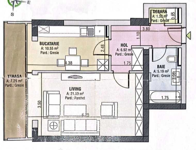 - Suprafata: 45m²