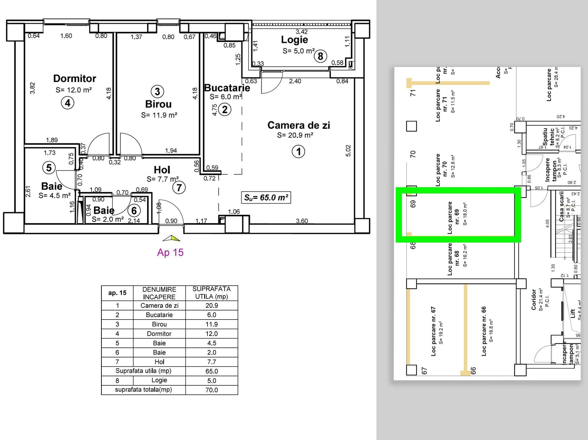 - Suprafata: 65m²